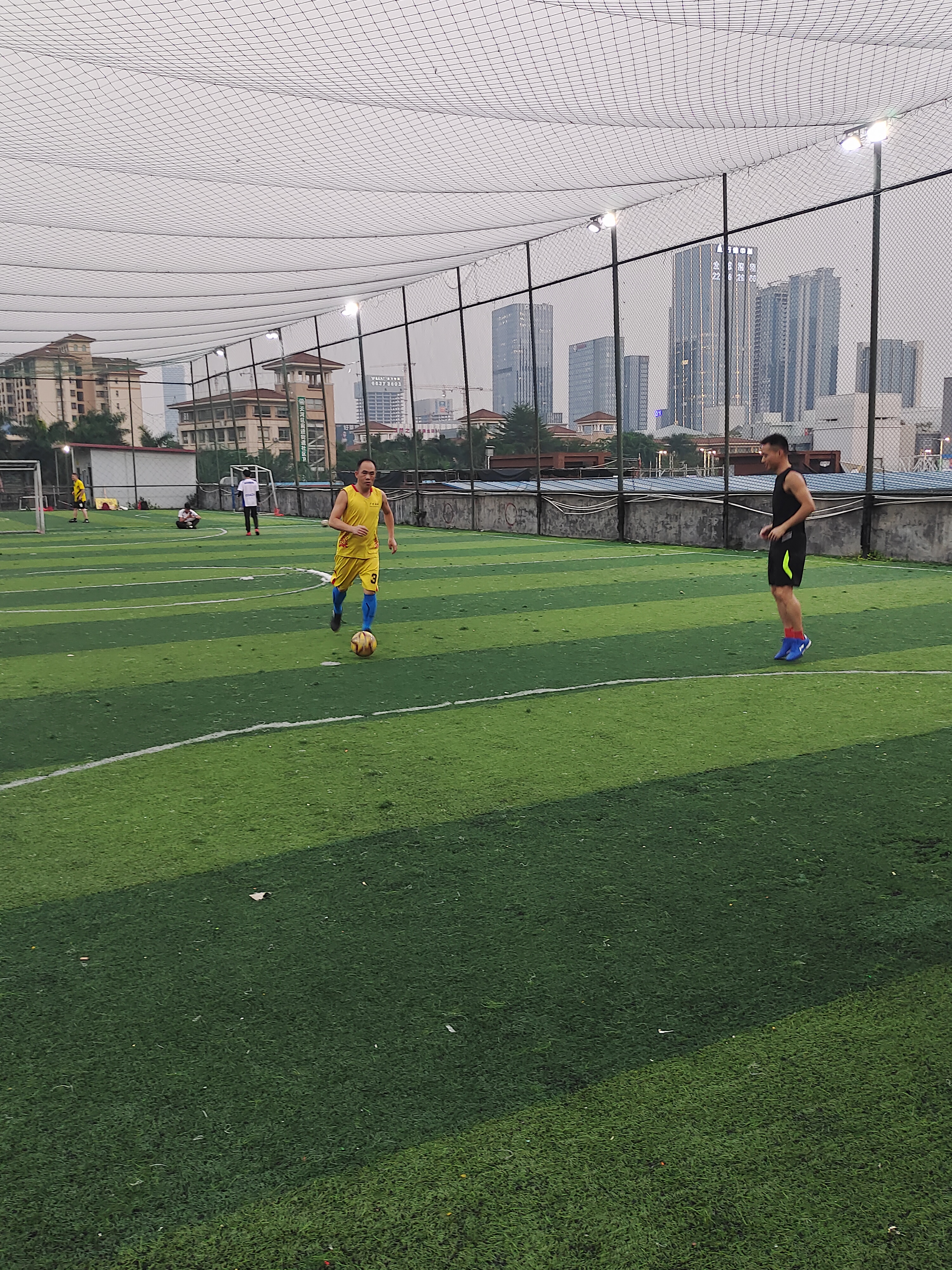 比賽開始,全體球員分為兩支球隊(duì)。比賽中,雙方你來我往,互有攻防,隊(duì)員分工明確、配合默契,在球場上不斷跑動(dòng)、進(jìn)攻、帶球過人,拼搶激烈而友好。雖然僅僅是一場公司內(nèi)部交流比賽,但是隊(duì)員們在場上所體現(xiàn)出來的拼搏精神和對比賽的認(rèn)真態(tài)度并不亞于專業(yè)球員。夜色漸漸變濃,比賽宣告結(jié)束,最終雙方比分不相上下,握手言和。