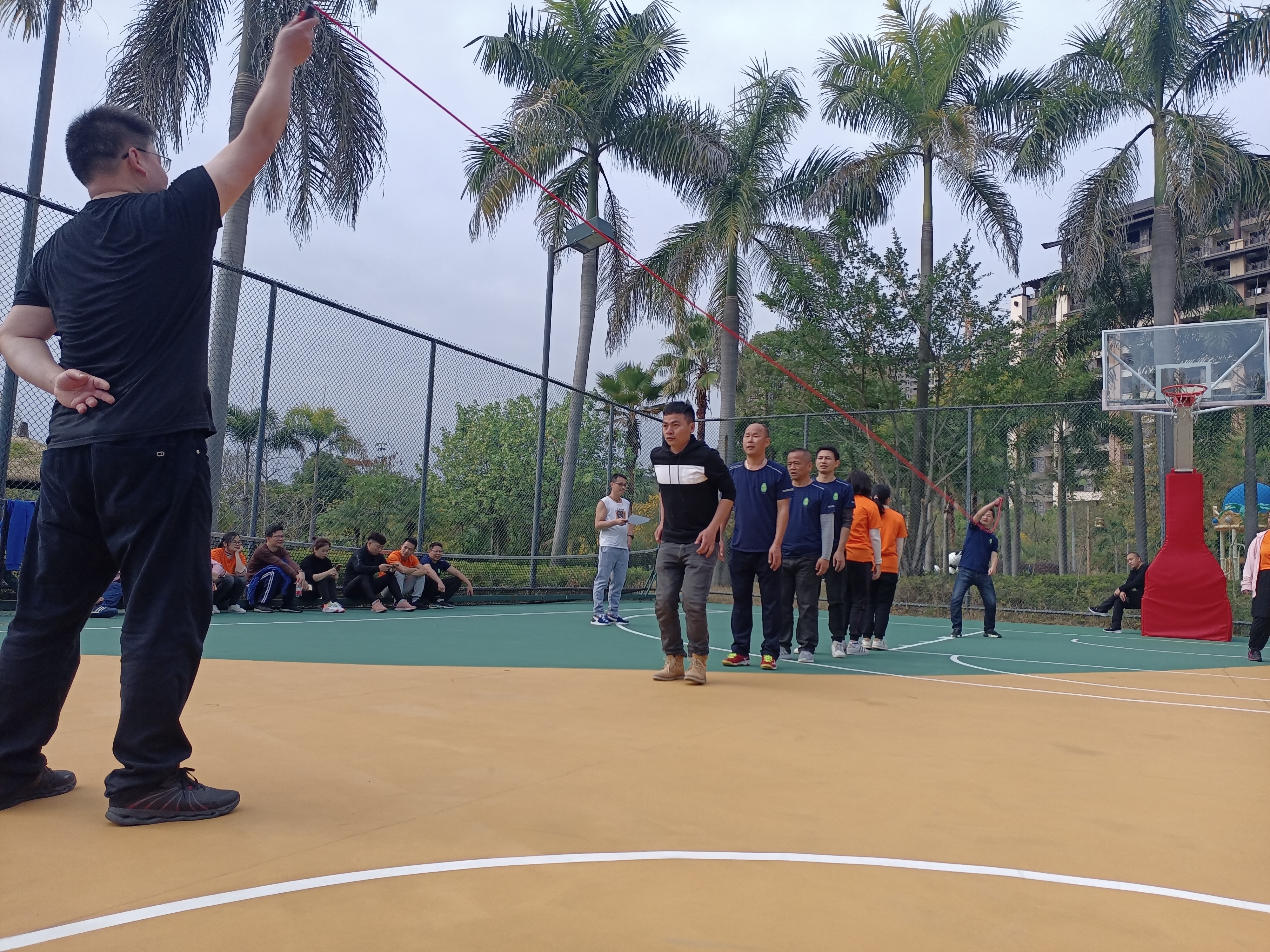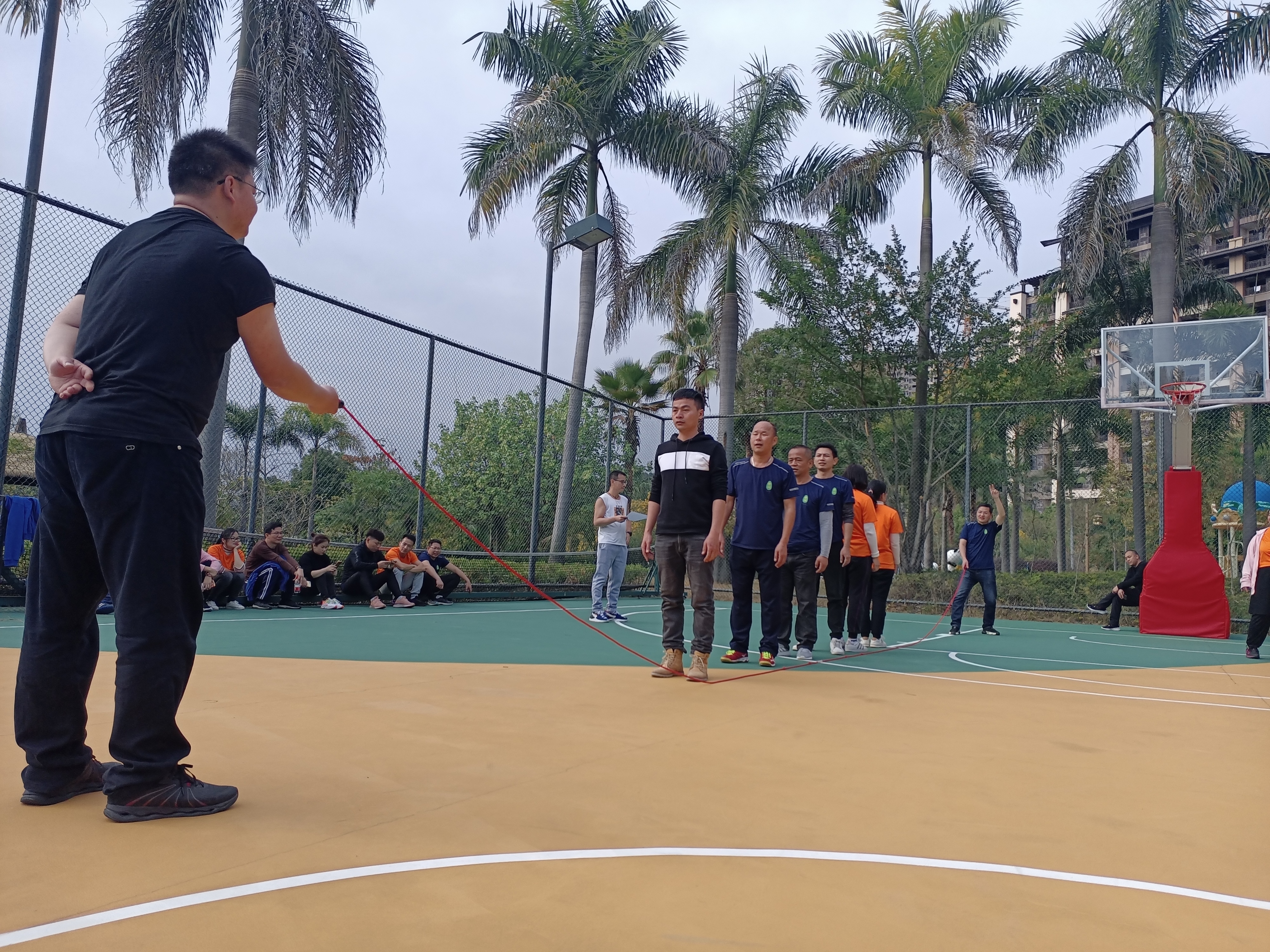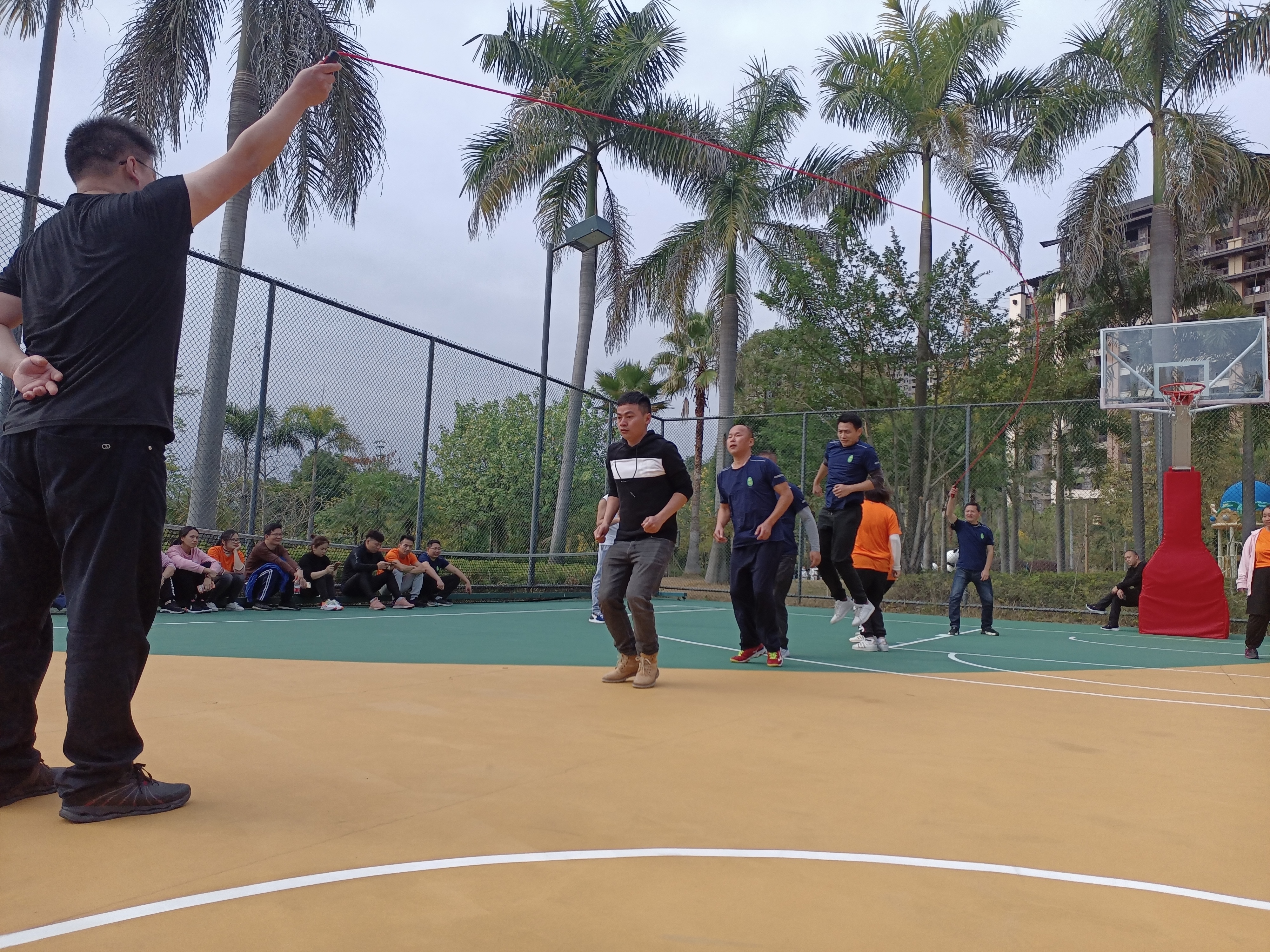 齊心協力,勇創佳績!隨著“預備,開始”話意一落,他們快速地跳了起來……很快時間到,我們都焦急的等待著裁判計算分數!