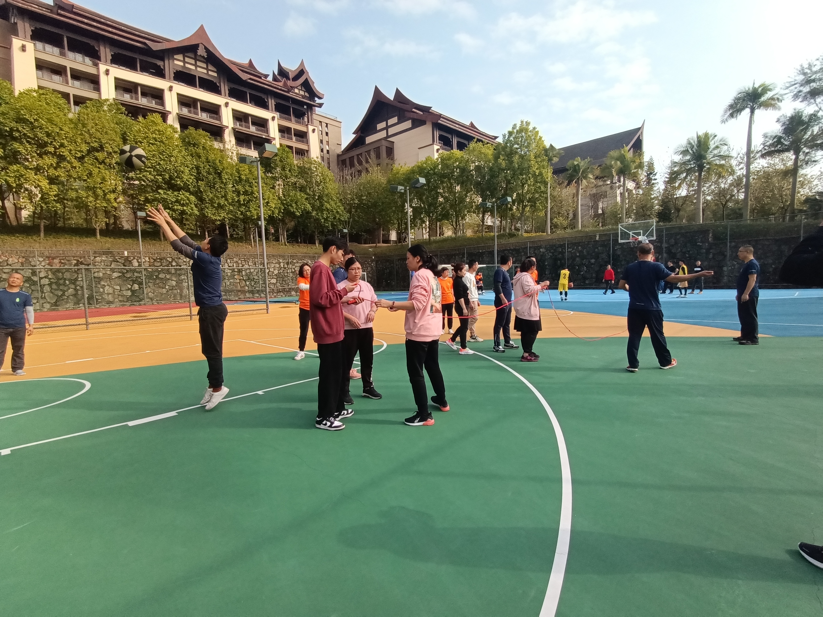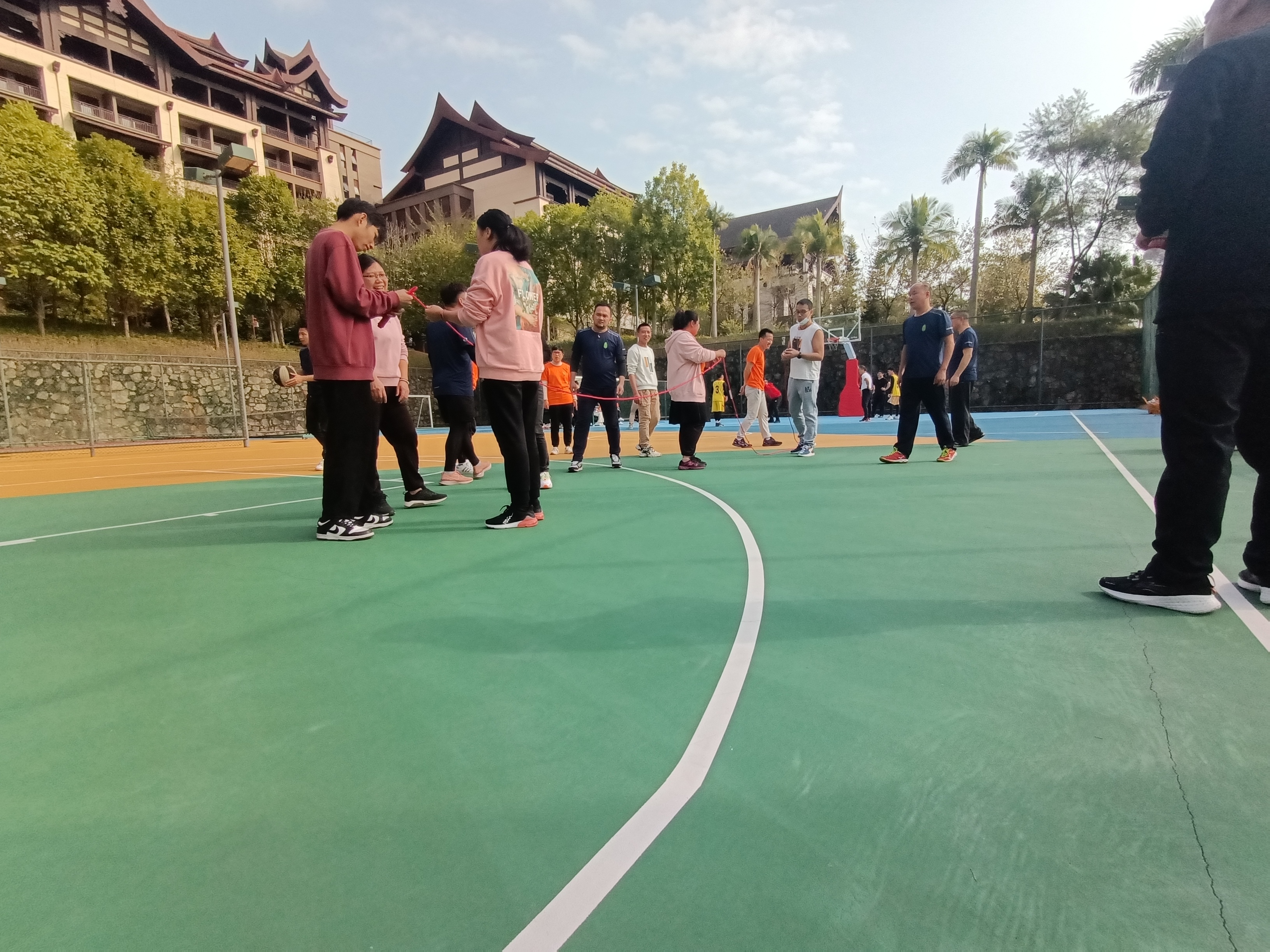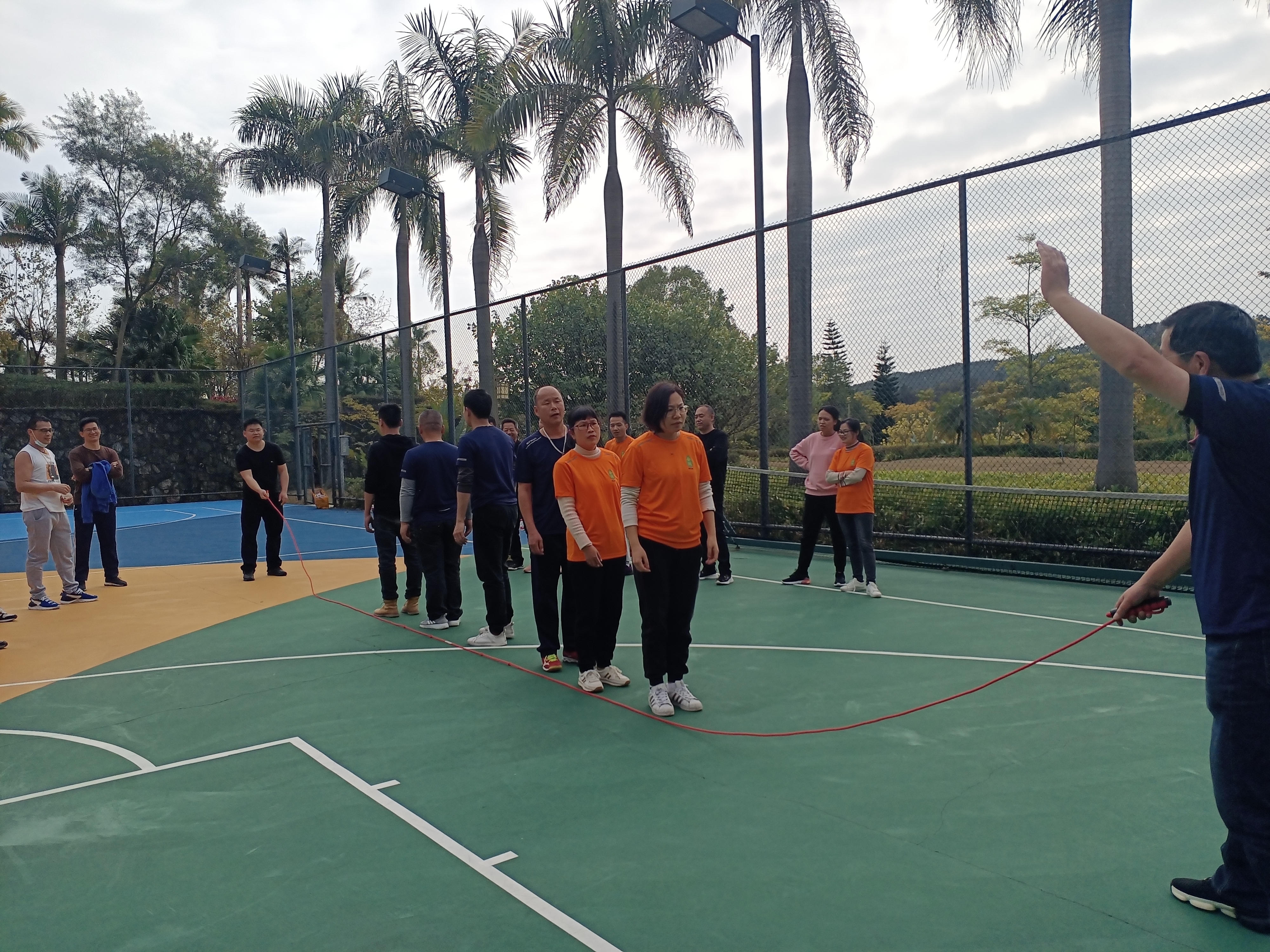 齊心協力,勇創佳績!隨著“預備,開始”話意一落,他們快速地跳了起來……很快時間到,我們都焦急的等待著裁判計算分數!