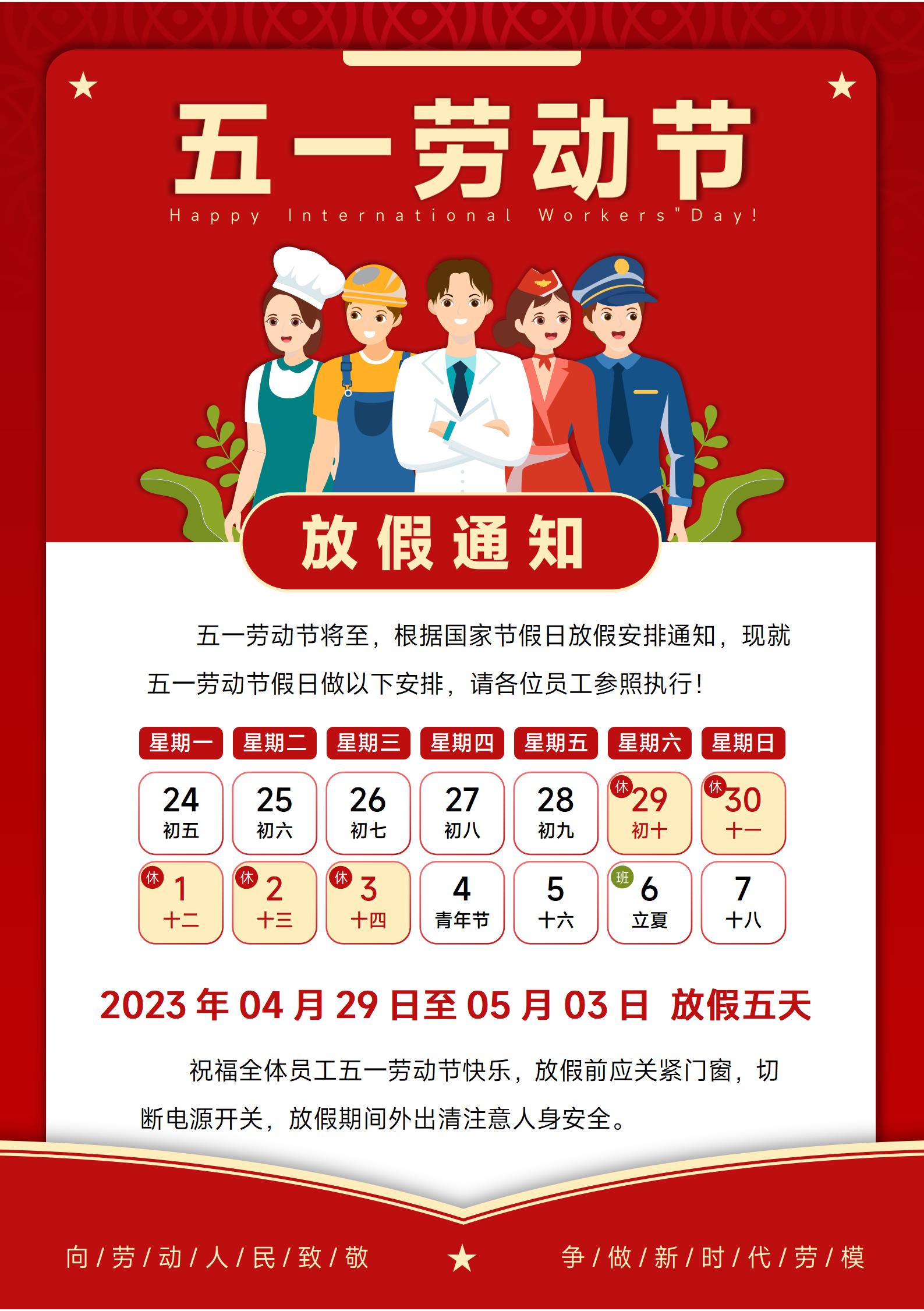 五一勞動(dòng)節(jié)將至,根據(jù)國家節(jié)假日放假安排通知,現(xiàn)就五一勞動(dòng)節(jié)假日做以下安排,請(qǐng)各位員工參照?qǐng)?zhí)行!