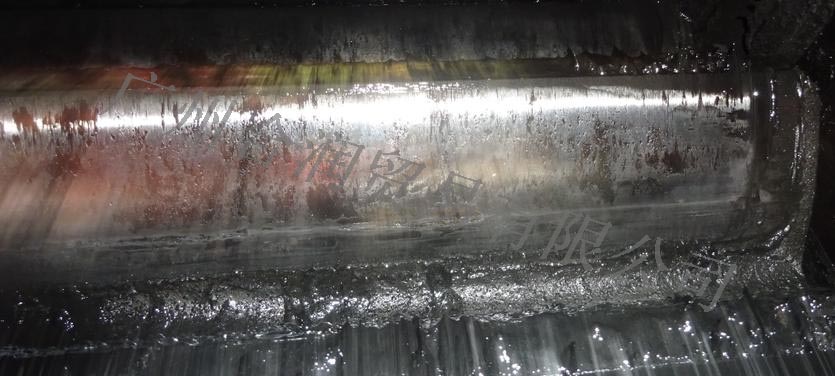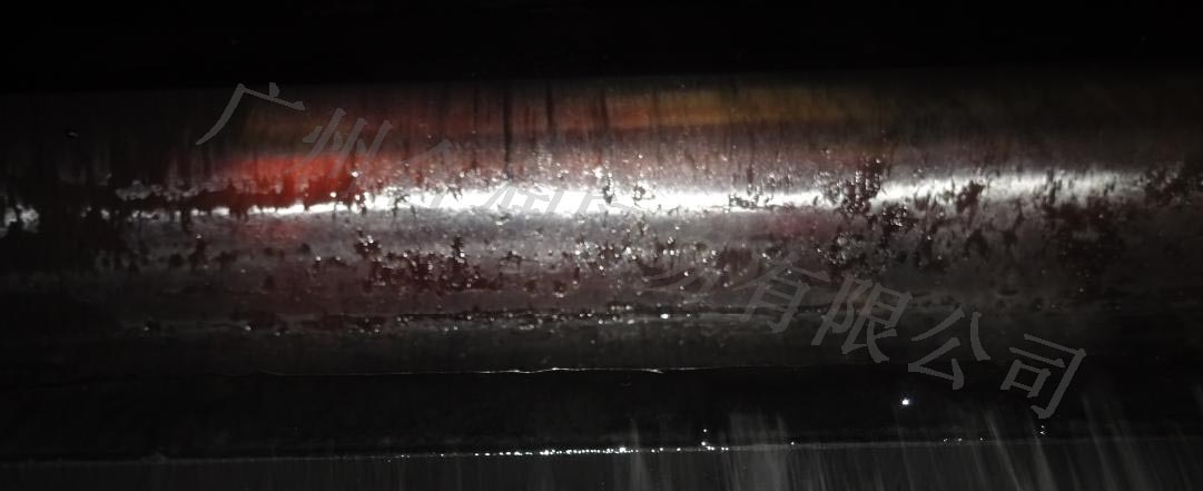 2、開式齒輪潤滑狀況:小齒齒面的潤滑劑粘附量較少,處于欠潤滑狀態(tài)。現(xiàn)場觀察潤滑劑發(fā)現(xiàn)粘度較低,粘附性較差,如長期使用會導(dǎo)致磨損加重,有齒面剝落甚至斷齒的風(fēng)險(xiǎn)。