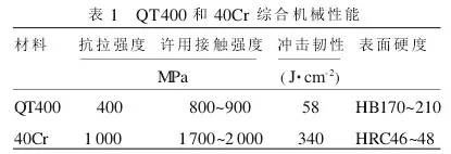 (1)材料機械性能的影響。平衡輪軌道材質為球墨鑄鐵(QT400),定中環材質為調質合金鋼(40Cr) 。兩種材料的機械性能對比見表 1。